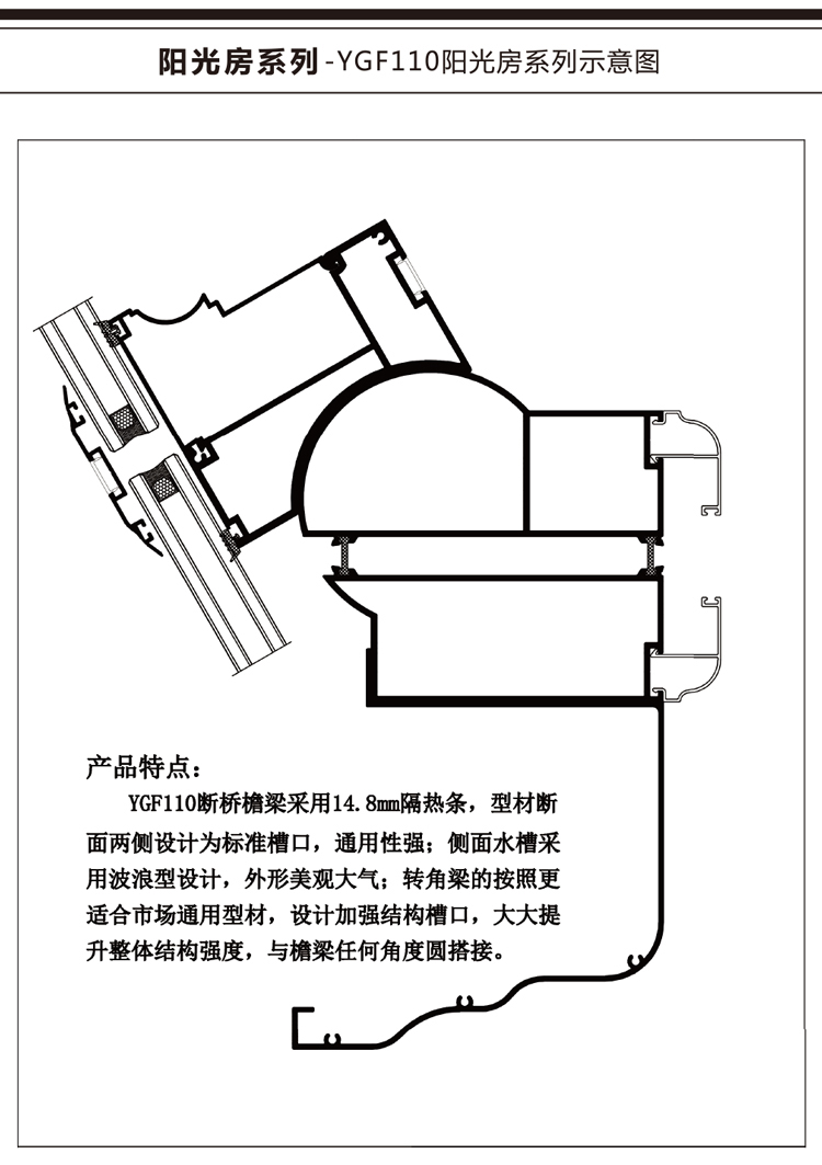 网站首页:系统门窗> YGF110阳光房系列示意图